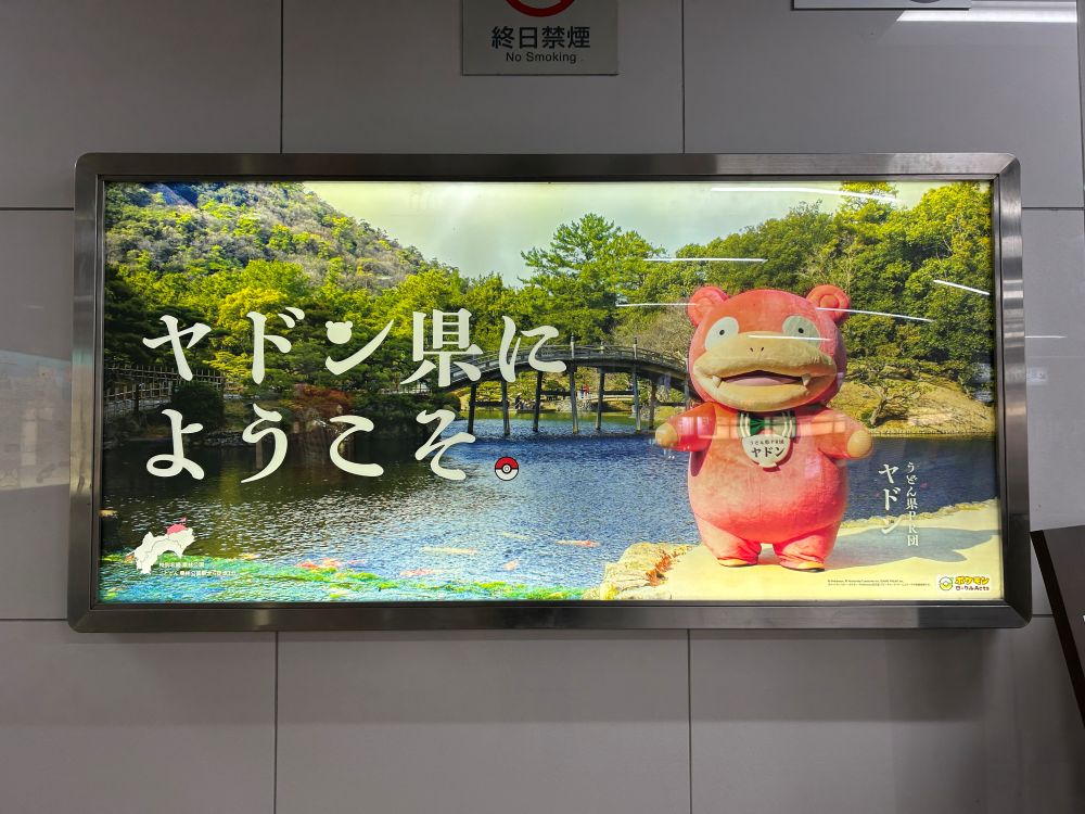 それから流石ヤドン県、このサイトの各所で出てくるふかふかでもちもちのヤドンもうれしそうで、とても嬉しかったです。香川第一村人の高松空港売店の店員さんも、ヤドン土産を買った俺のぱんぱんの鞄を見て「ぱんぱんやぁん」と言っており、大変アツかったです。それから、高松の高校生?が鞄にヤドンのフェルトのストラップを付けてて、めっちゃよかったすね……。ヤドン地元のお仕事してる……!! ヤドン😭えらいね😭😭ポケセンカガワのヤドンもかわいいね😭😭😭