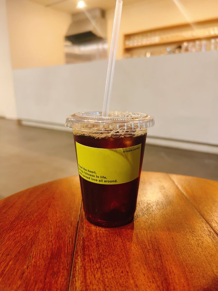 フジイさんのお使いVITAMIN COFFEEでは、要望通りホットカフェラテを注文し、ついでに自分用にブレンドアイスコーヒーを注文。おいしかったので150g豆も買っちゃいました。